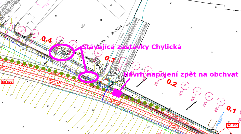 Jakmile se projekt obchvatu dokončí, nastane pětileté období stavební uzávěry okolo obchvatu, takže pokud se problém nevyřeší takřka hned, určitě se nebude řešit dalších pět let. Tím pětiletým obdobím mám na mysli to, že nepůjde udělat další stavební napojení na dokončený obchvat. Pokud by vedení města chtělo svést autobusovou dopravu přes centrum města, tak to samozřejmě může udělat kdykoliv. Navrhl jsem na zasedání zastupitelstva dne 21.2.2019, aby se napojila stará silnice hned za zastávkou směrem na Mirošov zpět na obchvat. Město může toto využít, jak informoval Josef Hůza s tím, že by se muselo jednat o novou stavbu, kterou by město muselo samo hradit. Pokud se zajdete podívat na místo viz. plánek, tak zjistíte, že se jedná asi o 3 až 5 metrů silnice, která by vrátila autobusovou dopravu z obchvatu zpět na zastávku Chylice. Byla by to typický investice města, která je v zájmu jejich obyvatel. Jistě dojde vedení města k nějakému závěru. Budu rád, když obchvat našemu městu přinese výhody rychlejší dopravy těm co jezdí auty, uleví obyvatelům Kamenného Újezdu a nám ve městě zůstane autobusová zastávka, která nebude jen pro okrasu.