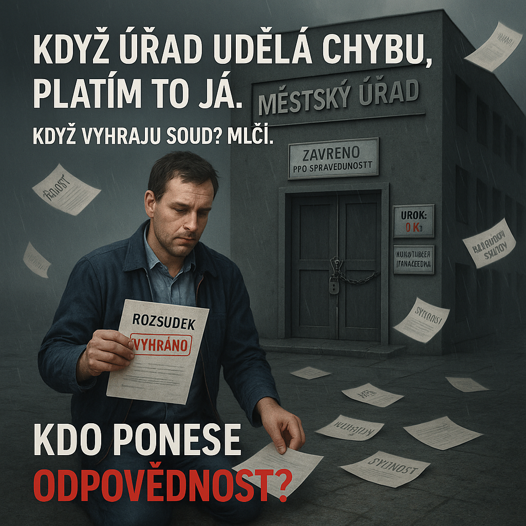 Je mi líto, že vám opět popisuji tento pokračující příběh, ale chci, abyste všichni věděli, že vyhrát u soudu bohužel neznamená, že úřad svou chybu napraví bez dalších komplikací. A co se stane úředníkovi, který vše nezákonně rozhodl? Žádná odpovědnost, žádná omluva – a přesto dál s plným platem. Také si můžete beztrestně chybovat ve své práci s tím, že za vaše chyby bude platit zaměstnavatel? Nemyslím si…
